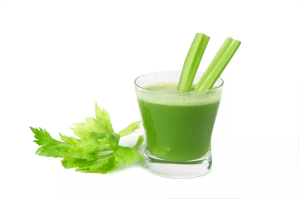 Licua dos tallos de apio fresco y un vaso de agua. Consumir en ayunas 3–4 veces por semana.